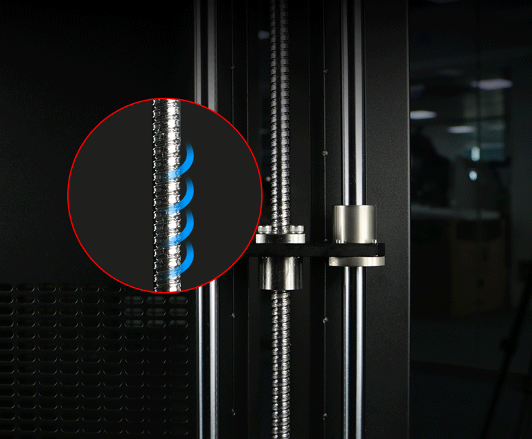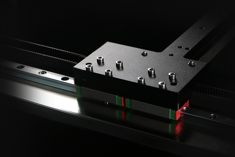 極光創(chuàng)新在3D打印機XY軸運動組件中,采用先進的雙滑塊直線導軌技術,運動平穩(wěn)、振動小,能更好地保證精度