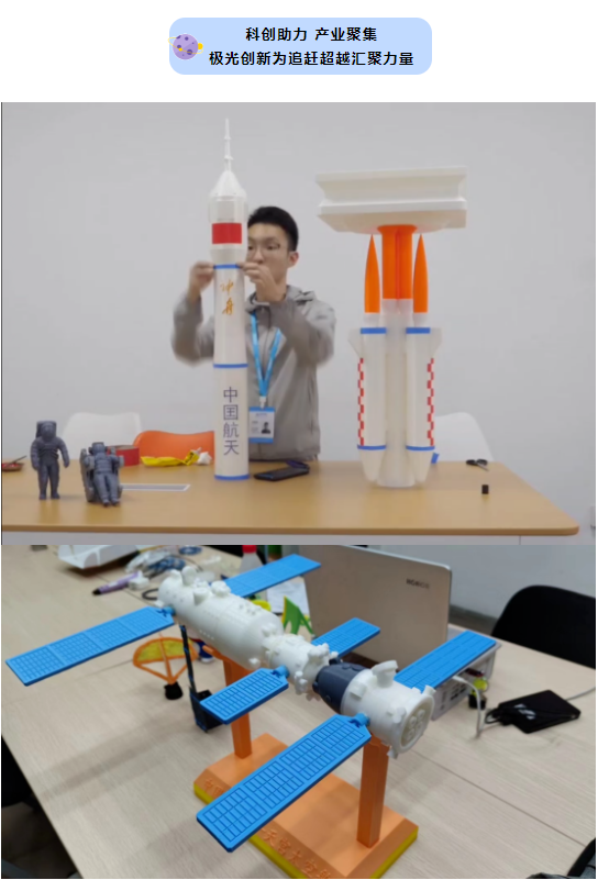 飛天夢(mèng),極光夢(mèng)!極光創(chuàng)新小伙伴在獲悉神舟十五號(hào)載人飛船即將發(fā)射之際,極光創(chuàng)新3D打樣團(tuán)隊(duì)利用工業(yè)級(jí)A8S/A9Pro等工業(yè)級(jí)3D打印設(shè)備,花費(fèi)3天3夜不間斷打印,終于在神舟十五號(hào)飛船發(fā)射之際,完成了空間站組合體的打印及裝配工作,用于祝賀我國(guó)航天產(chǎn)業(yè)取得的諸多技術(shù)性突破,同時(shí)也祝賀祖國(guó)在空間站建設(shè)方面實(shí)現(xiàn)了超越傳統(tǒng)空間站技術(shù)水平的高速發(fā)展。