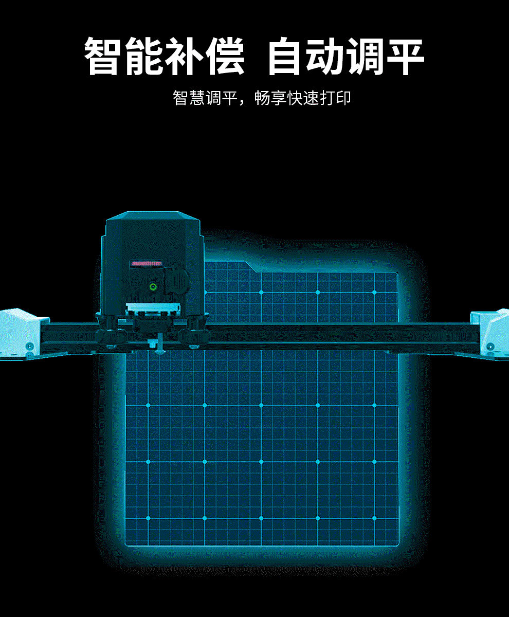 為了讓用戶擁有良好的用機(jī)體驗(yàn),即刻享受3D打印帶來的樂趣,R1搭載了全新的非接觸式智能補(bǔ)償調(diào)平系統(tǒng),25點(diǎn)快速調(diào)平。