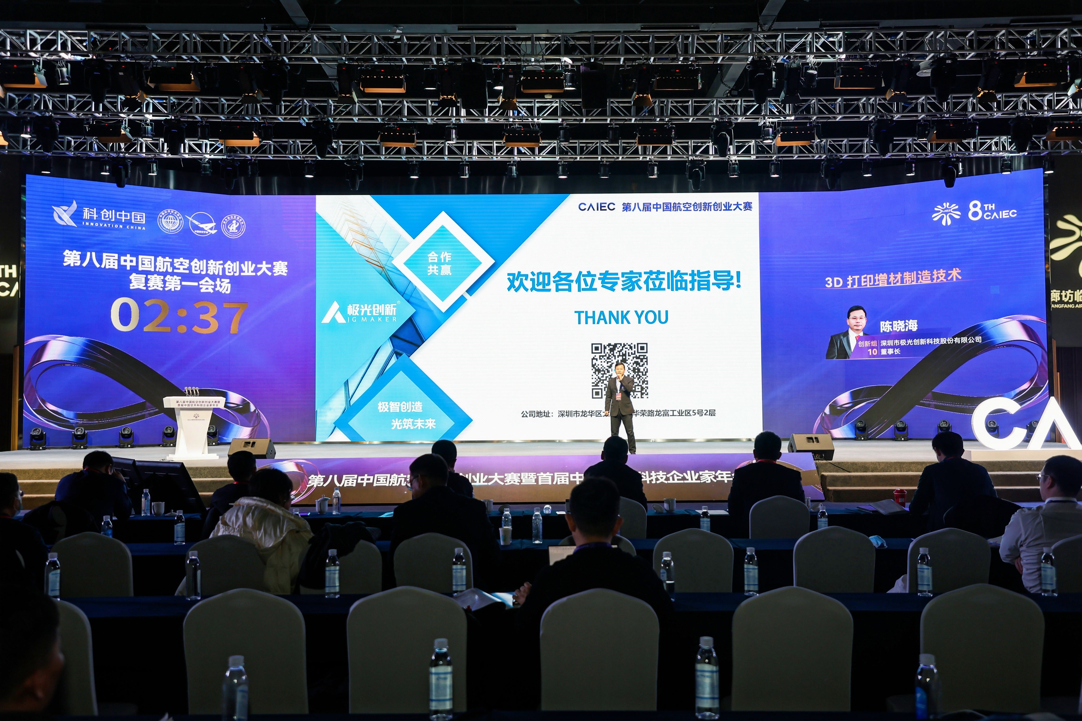 極光創(chuàng)新作為增材制造技術(shù)的代表企業(yè),受邀參加了此次活動(dòng)創(chuàng)新組的項(xiàng)目競(jìng)演。與來(lái)自航空工業(yè)、航發(fā)集團(tuán)、南航、北航、西工大的前沿技術(shù)團(tuán)隊(duì)和其他行業(yè)優(yōu)秀的民營(yíng)企業(yè)同臺(tái)競(jìng)技、激烈比拼,最終成功挺進(jìn)復(fù)賽,斬獲了不斐的成績(jī)。