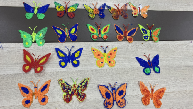接下來的環(huán)節(jié)中,李老師帶領(lǐng)學(xué)生們進(jìn)行3D打印筆的教學(xué)。通過幾分鐘的介紹,學(xué)生們就能快速上手操作3D打印筆進(jìn)行繪畫了。小編不得不感嘆學(xué)生們的動(dòng)手能力真強(qiáng),能夠又快又好地完成作品。