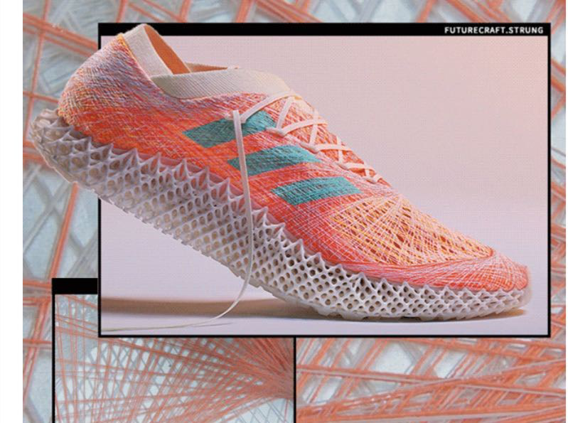 阿迪達(dá)斯發(fā)布了一則新款預(yù)告消息:高端鞋面制作技術(shù)strung,結(jié)合高端鞋中底光固化3D打印制作技術(shù),打造出第一款數(shù)據(jù)編碼裝備,突破跑鞋極限,重塑未來。