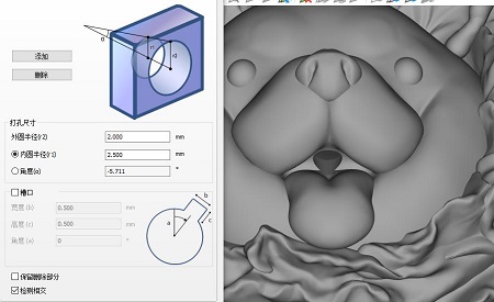 最后,赤兔軟件支持保留孔樁,magics也可選保留孔樁,用以打印完后補洞。模型清洗完后,需要放置一段時間,待內(nèi)部酒精蒸發(fā)干凈后再補洞。另外,一般LCD都會存在膨脹現(xiàn)象,因此孔樁需要打磨后才可補入。