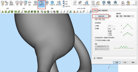 ③在功能頁上,可選擇設(shè)置倒角,即將尖銳的切割角去銳化,也設(shè)置間隙,以方便后期拼合。另外有一個比較重要的功能,即“鎖定多段線”,由于模型和切割線并不是保持不變相對位置,而是可調(diào)整的,所以這個的功能的開啟和關(guān)閉能改變不同的切割線固定方式,以方便調(diào)整模型角度切割。