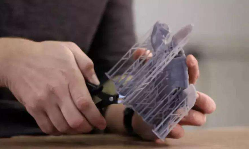 在打印過程中,為了保證物體的穩(wěn)定性,可能會(huì)添加一些支撐結(jié)構(gòu)。這些結(jié)構(gòu)在打印完成后需要被去除,以獲得更加光滑的表面??梢韵扔镁凭?/span>15分鐘,讓模型表面多余的樹脂化解,支撐軟化后使用剪刀、剪鉗或者是砂紙等工具來去除這些支撐結(jié)構(gòu)。