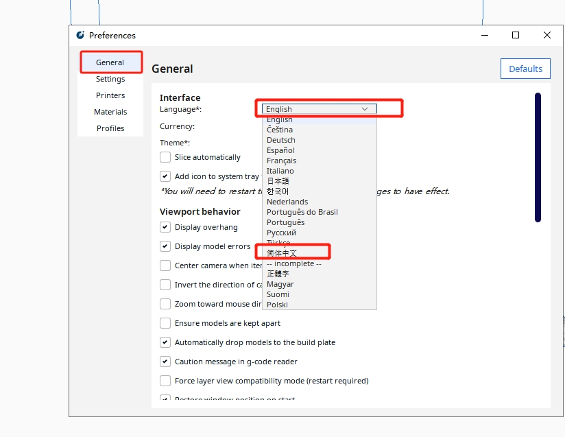 新手玩家拿到打印機(jī)后,第一步是除了安裝機(jī)器之外,還需要下載切片軟件,有小伙伴就會(huì)發(fā)現(xiàn),新下載的切片軟件頁面顯示的都是英文,問題來了,切片軟件的英文頁面該如何切換成中文?