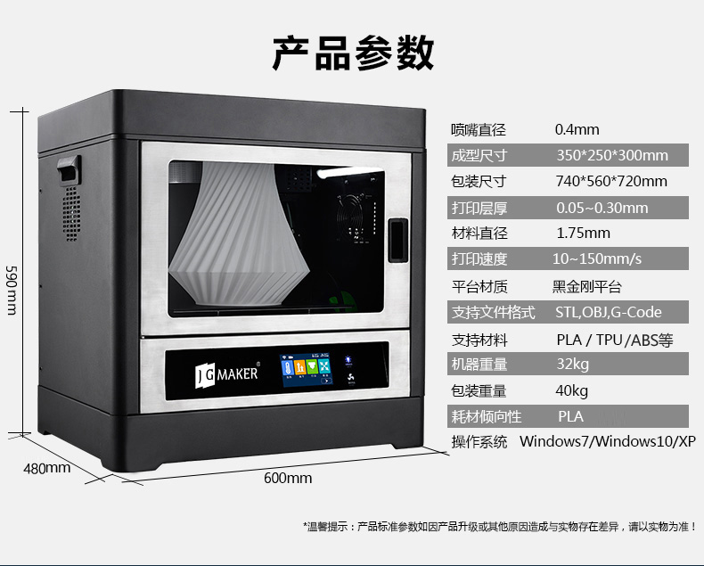 支持文件格式:STL, OBJ、 G-Code機(jī)器尺寸:590*460*600mm