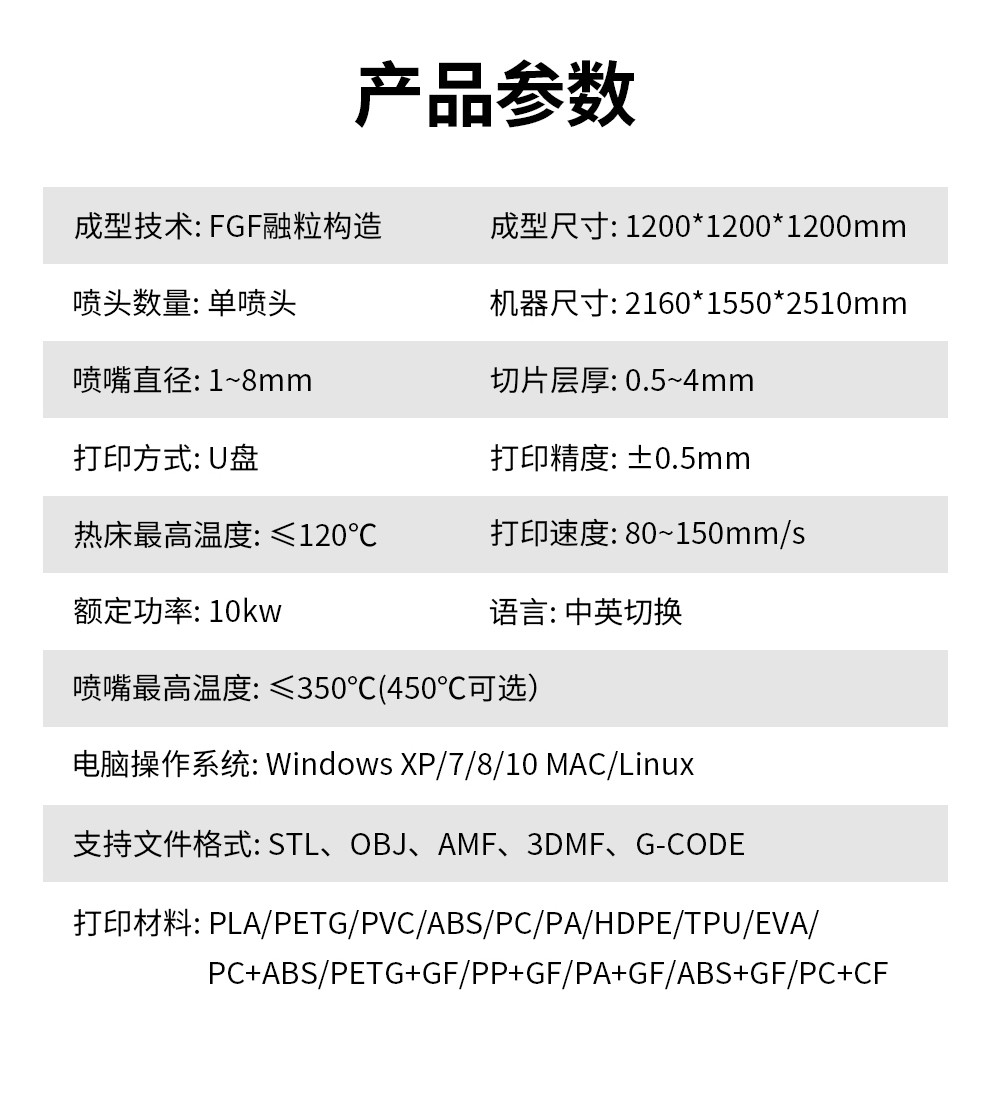 1.2米超大打印尺寸,低成本滿足大規(guī)格工業(yè)模型及零部件成品的打印需求