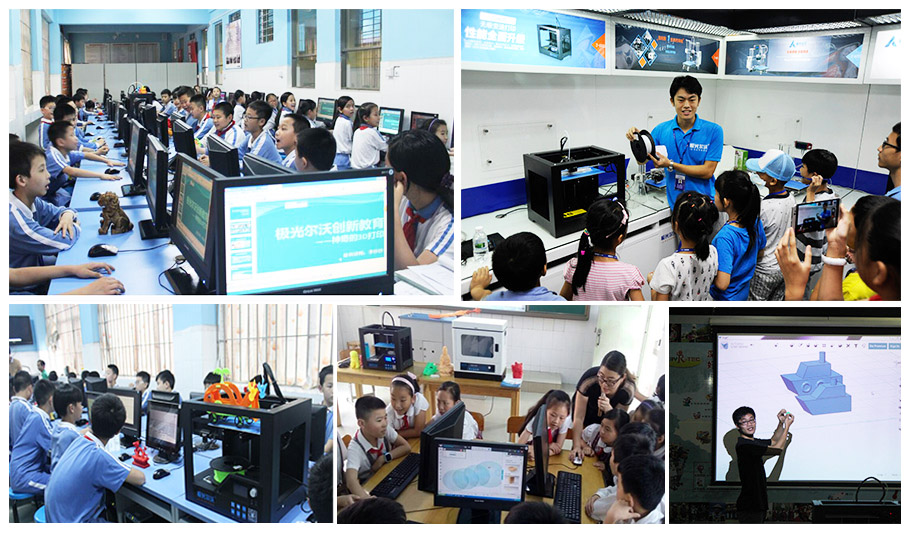 極光爾沃聘請專業(yè)教師團隊,建立3D創(chuàng)新教育實驗室,基于3D打印的優(yōu)勢和特性,開發(fā)出了一套體系化的符合目前